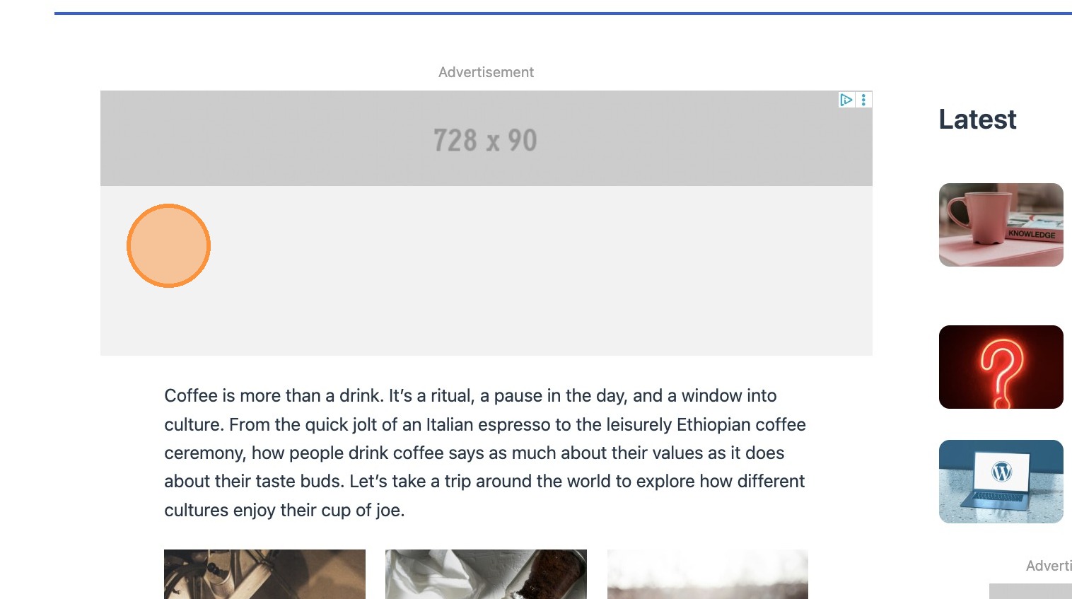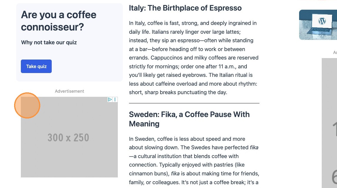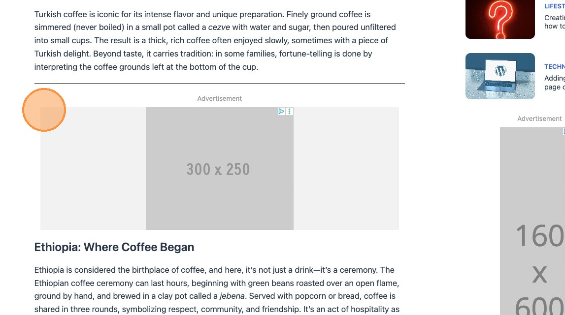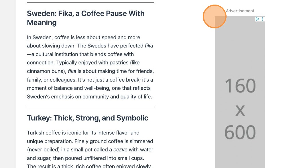 Please note that when using sticky positioning, the ad block will stick to the top of the viewport when scrolling. It’s therefore important to establish the relevance of the ad in relation to your content.