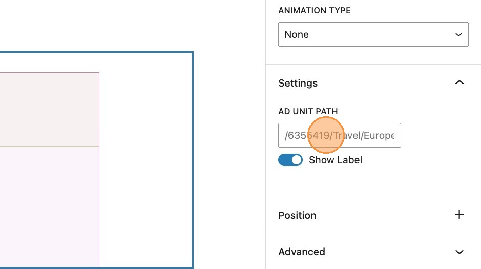 6. The ad unit path property will be populated with the default from your site settings, however if you wish to override it on a specific ad block you can do that here.