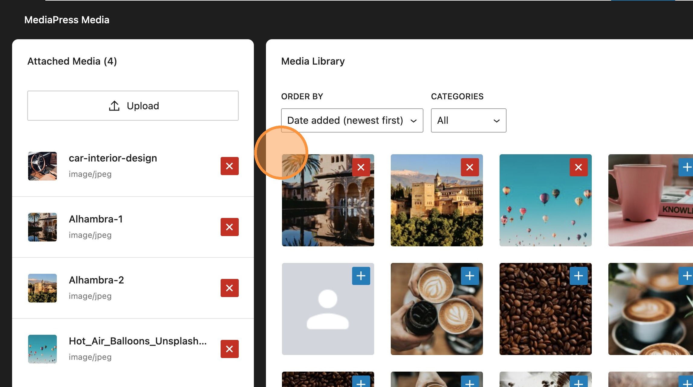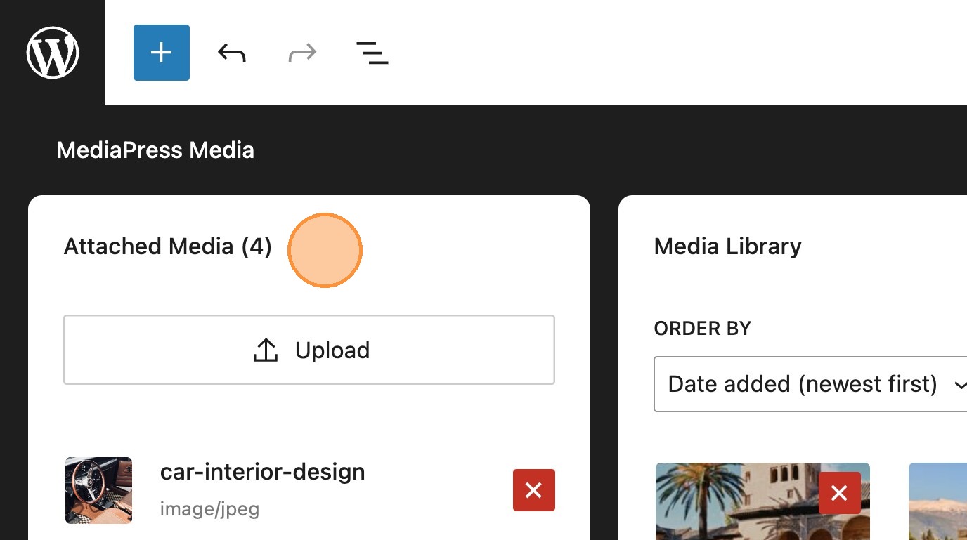 9. Now that these assets have been attached to the post, these can be added in the usual way, with only attached media appearing when adding images.