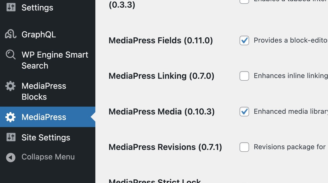 1. Before getting started, it’s important to note that for DAM to function properly, the Fields and Media modules must be enabled in the MediaPress settings.