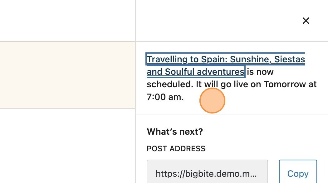 Please note: It’s important to remember that this feature creates a duplicate of the original post. Once the scheduled changes are published, these merge back into the original post.